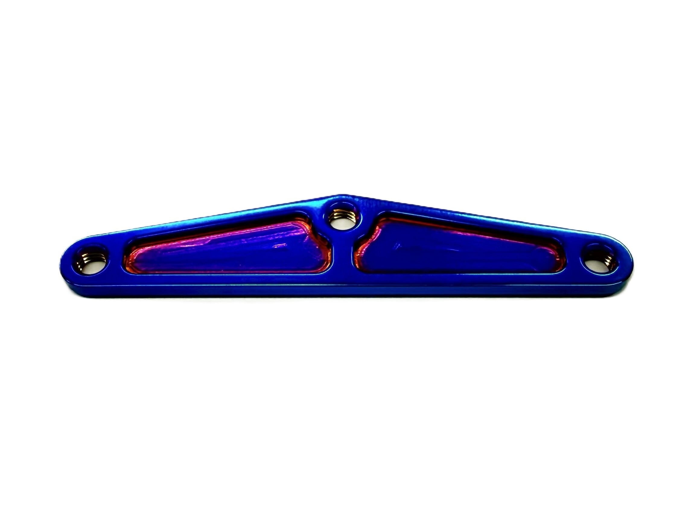 ■重量は約3gと軽量で表裏リバーシブルデザインとし、シャーシバンパー部へ取り付けることで、シャーシのフロントエンドの剛性向上やドレスアップ向上に貢献します。またバンパープレート下にM3真鍮スペーサーなどを組み込むことで、フロント軸重を上げることも可能です。