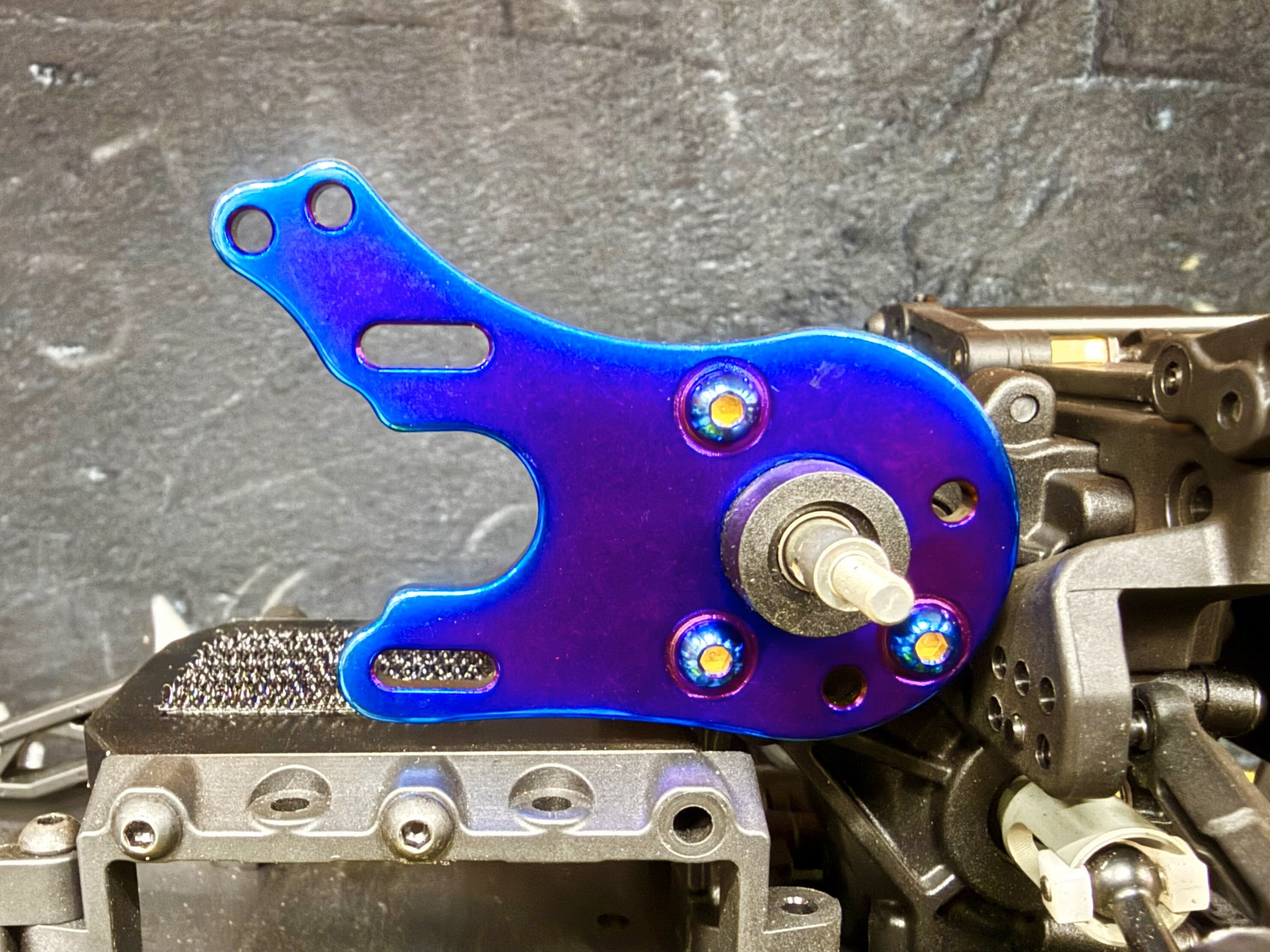 ■艶めかしい発色の焼き色の64チタン材を使用した、高強度・高耐力・鮮やかな焼き色が付いた「64チタン【焼き色付き】モーターマウント RDX用」が新発売です。