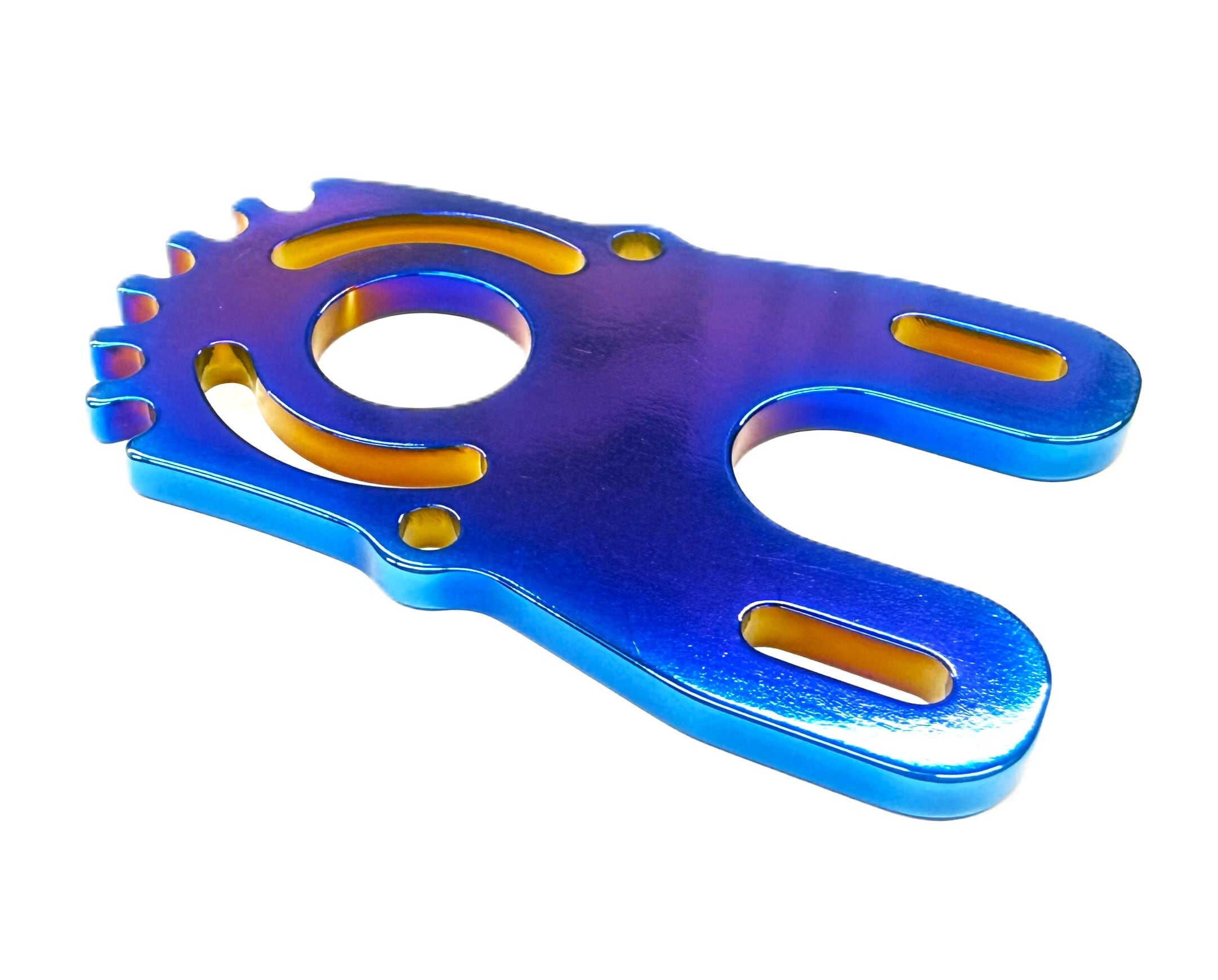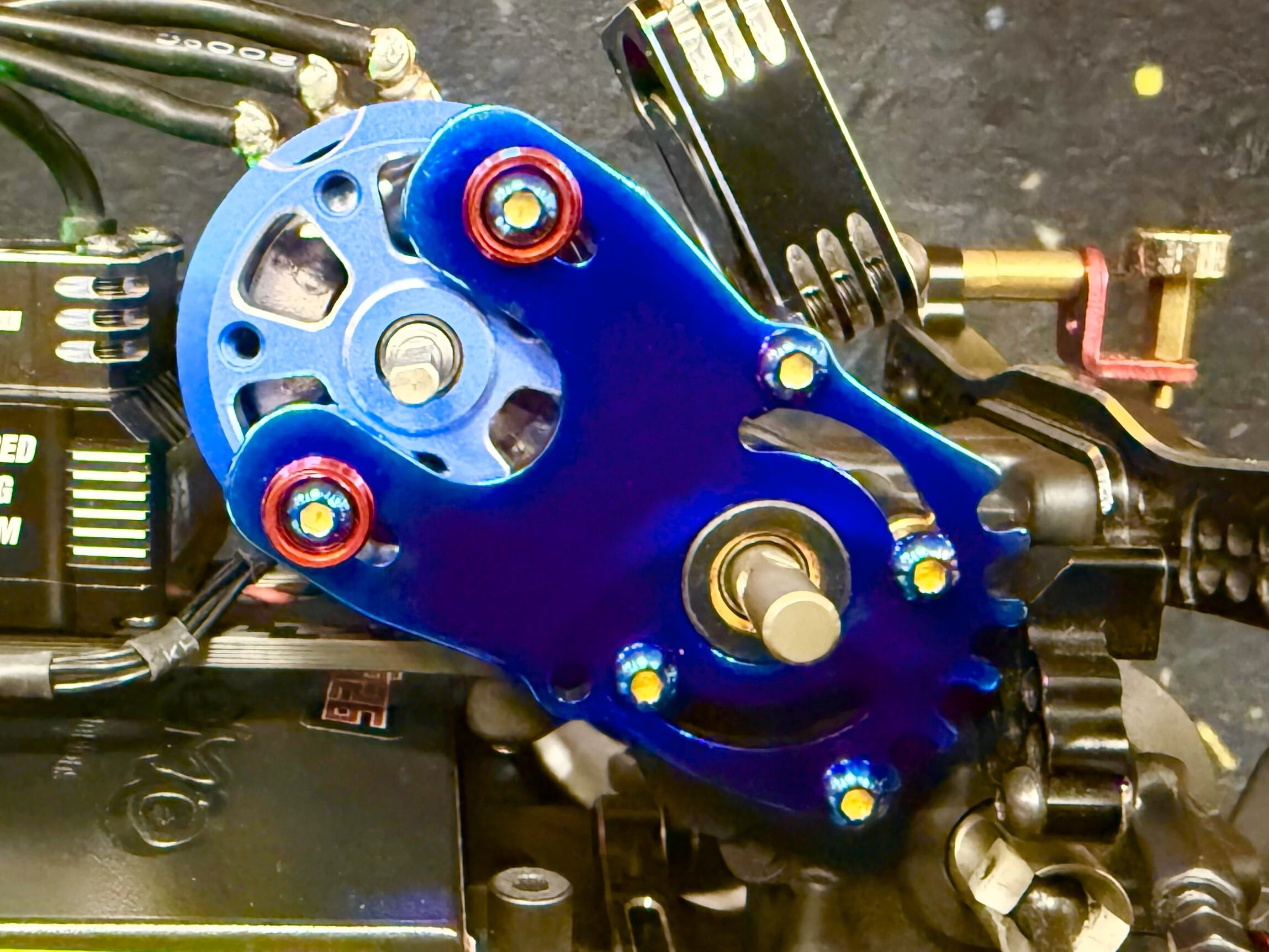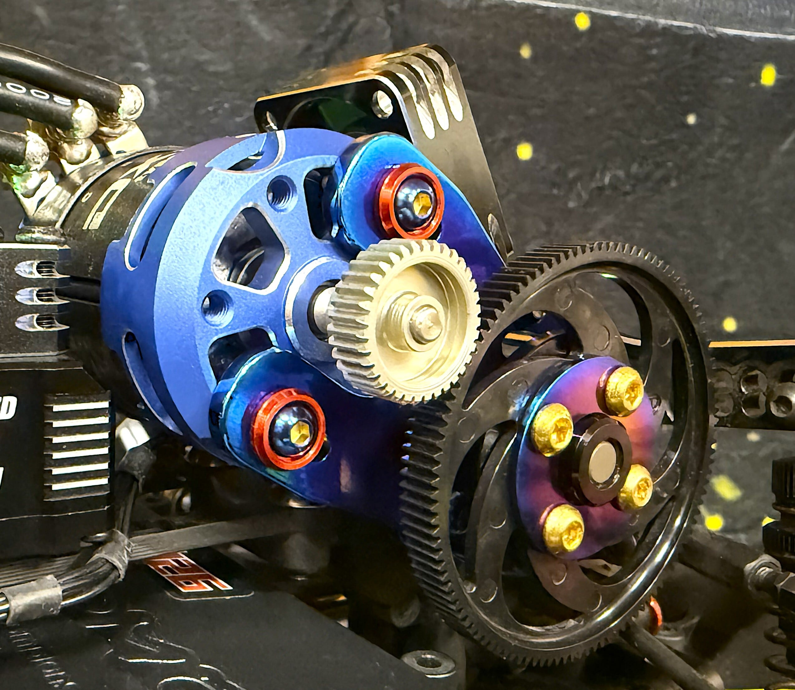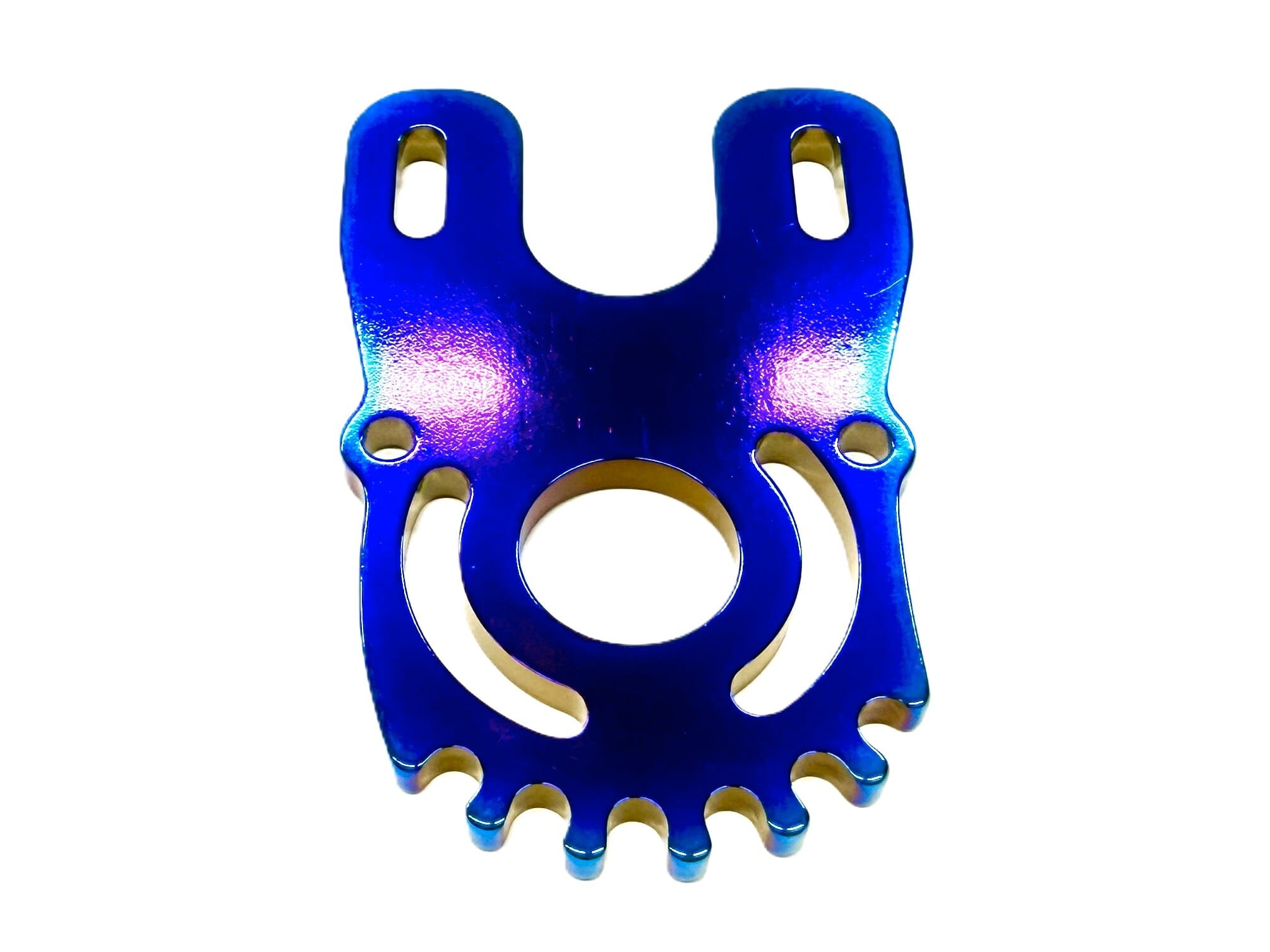 ■高強度な64チタンを高精度に加工されたモーターマウントを使用することで、極上なマシンメイクと艶めかしい発色の焼き色によるドレスアップ効果や個性あるマシン作りが可能になります。モーターマウント取付穴は標準と同じ穴位置になります。
