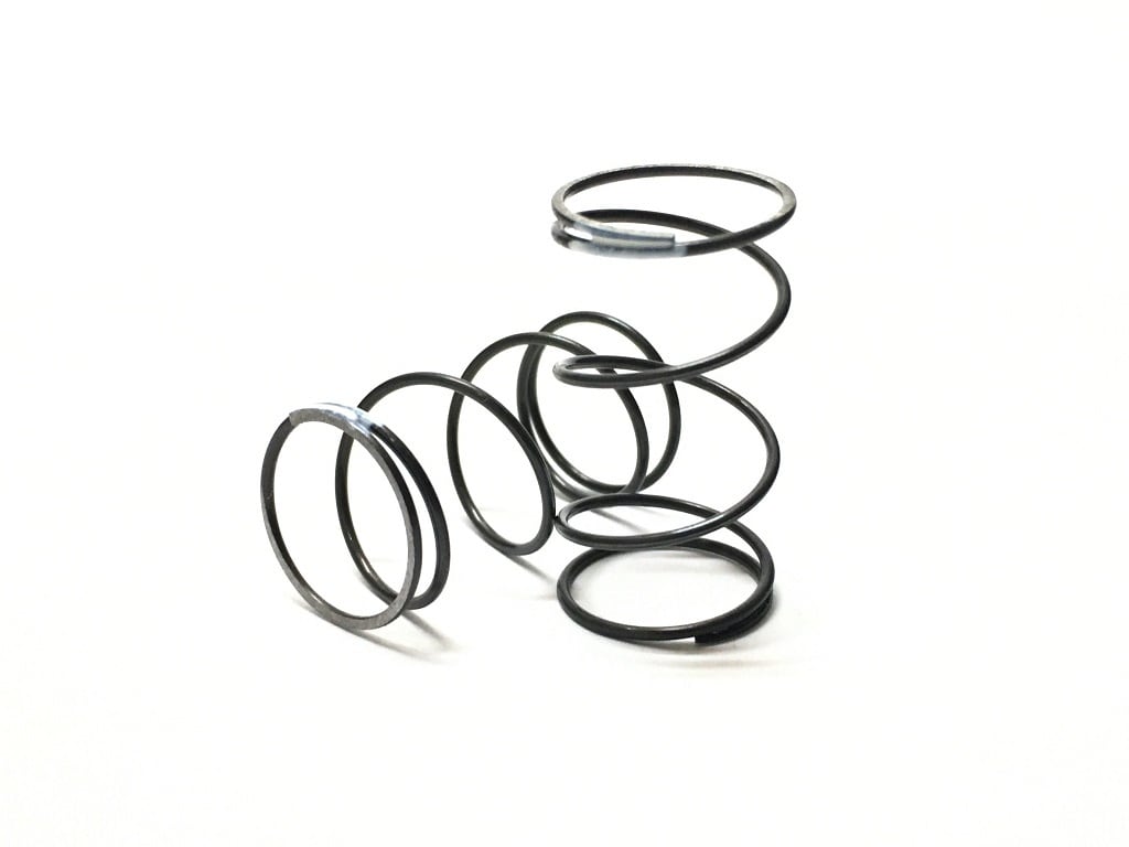 ■フロント用Type-Bのスプリングは、線径1.0mm総巻数を5.0と5.5とすることで路面の捉えやすさやトレース感を重視し、全長を30mmにすることでダンパーのレバー比を内側でも外側でも対応できる設定といたしました。キビキビ感はレバー比を内側、安定感はレバー比を外側がお勧めです。車高や効き具合の調整には巻数を変更することで対応します。