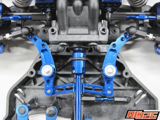 ■アルミ削り出しの高剛性、高精度のアルミベルクランクで、ワイパー部が延長されていて、タイロッドの取り付け位置が変わることでステアリングのアッカーマン比を調整することが出来ます。