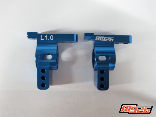 ■アルミ削り出しの高剛性とし、シンプルなデザインながら、アッパーアーム取り付け位置を4箇所、サスピンの取り付け穴はオプションホール含め3箇所とすることで、多種多様なセッティングが可能。