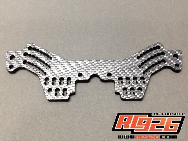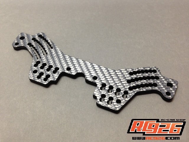 ■従来のドリパケ用カーボンショックタワー同様、厚さを4mmとすることで高剛性とし、シンプルなデザインながら、ダンパー取り付け位置とアッパーアーム取り付け位置のセッティング箇所を豊富に用意しました。