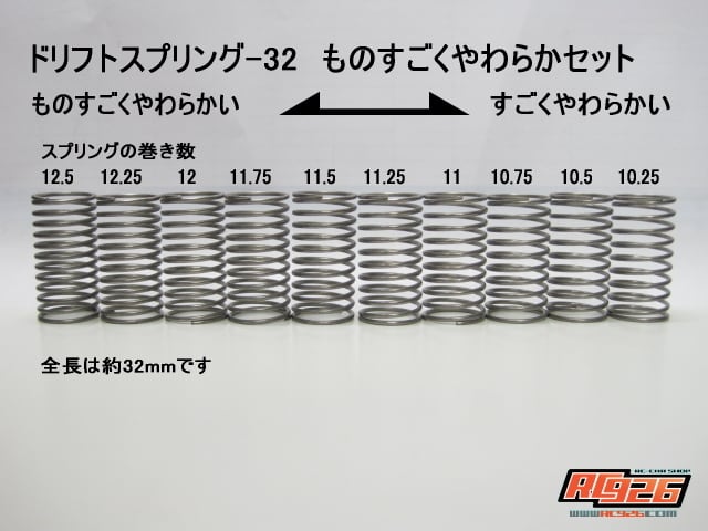 ■好評発売中の全長32mmの「ドリフトスプリング-32 ものすごくやわらかセット」の単品がニューラインナップです!