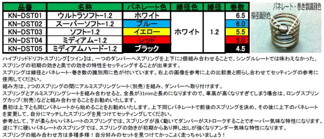【RC926】ハイブリッドドリフトスプリング【ツイン】 ウルトラソフト-1.2 ホワイト(4個入り) KN-DST01