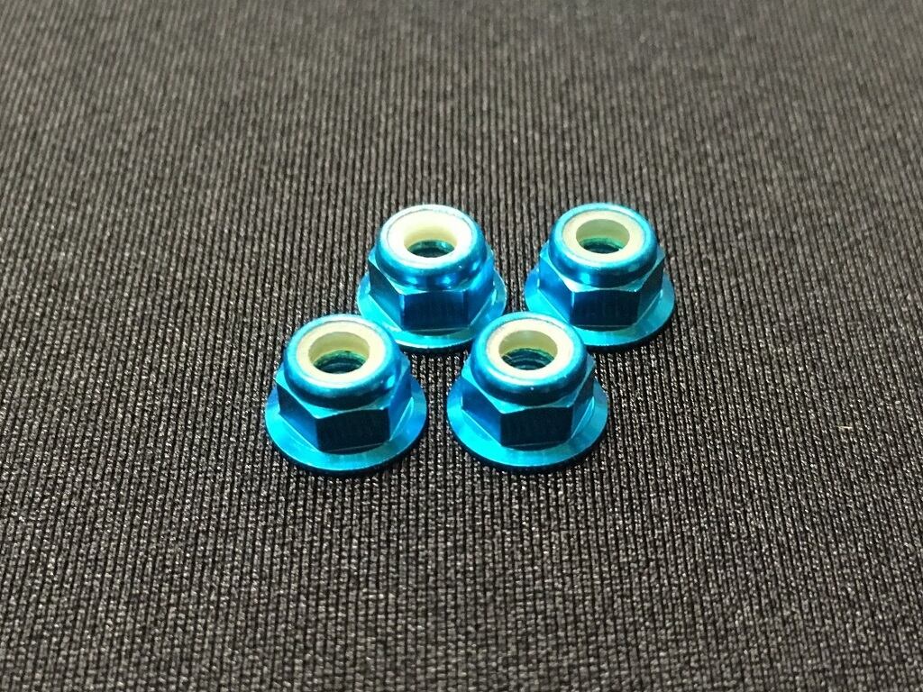 【t4works】アルミフランジロックナット 4mm(4個入り)【ライトブルー】 T4-LN04LB