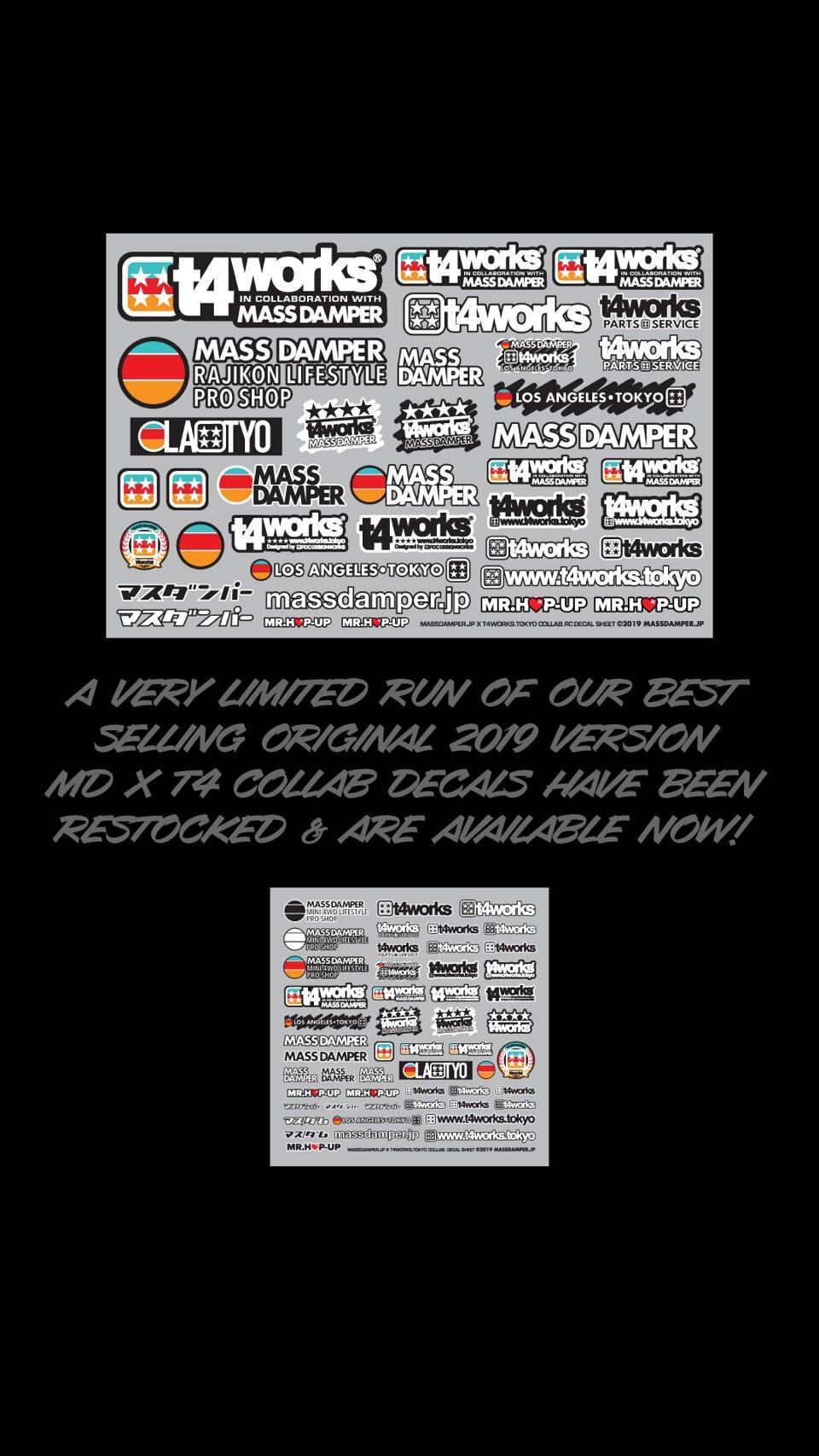 ■カリフォルニア ロサンゼルスを拠点とするミニ四駆ライフスタイルブランドの『Mass Damper』と日本(東京)を拠点とするRCパーツブランド『t4works tokyo』のLA×TOKYOスタイルをMIXしたデザインのミニ四駆サイズ デカールセット 2021年バージョンです。