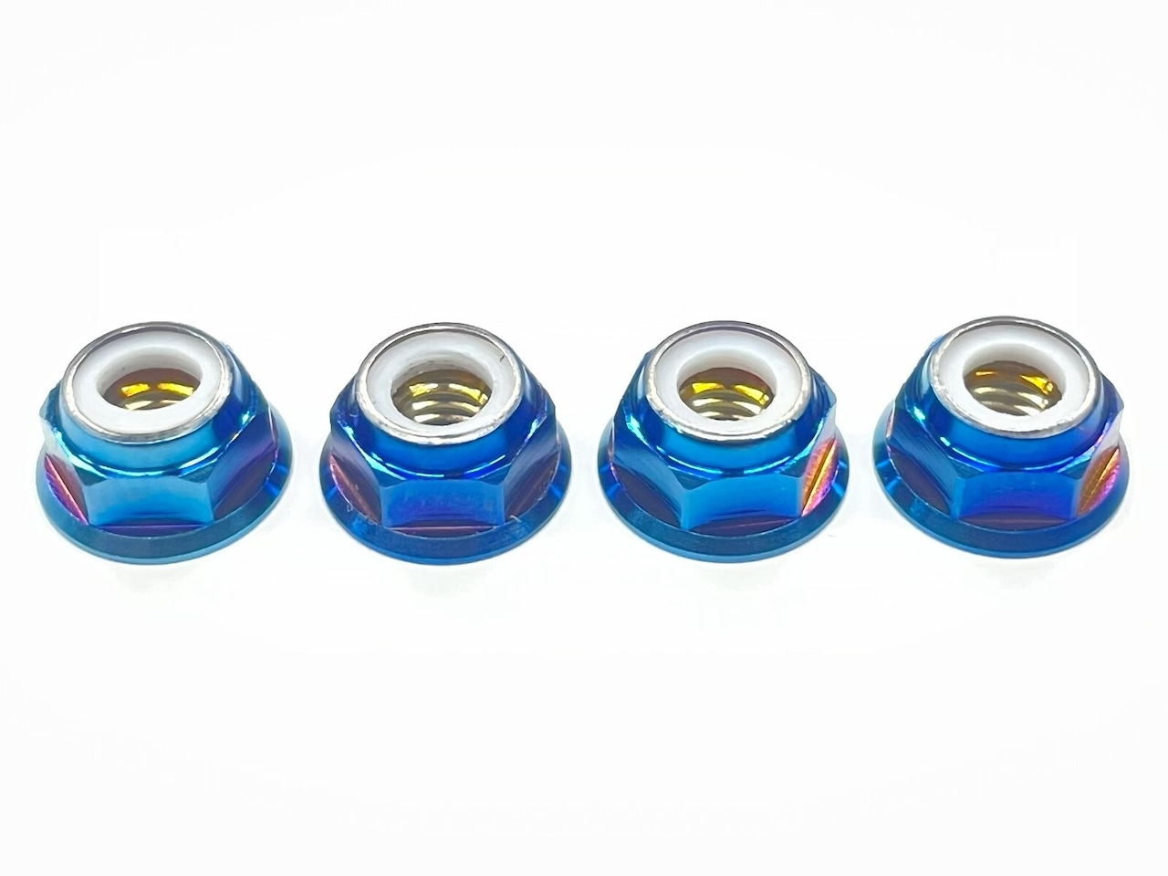 ■比重はステンレス鋼より4割以上も軽量な64チタン材を使用した、軽量・高強度・高耐力・鮮やかな焼き色が付いた「64チタンホイールロックナット M4用(4個入り)」が新発売です。